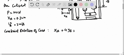 An athlete pulls handle A to the left with a constant force of P 100 N. Its velocity is 2 fts determine a the accelerations of handle A and weight B b the velocity and change in position of handle A. Answer View Answer Discussion You must be signed in to discuss.